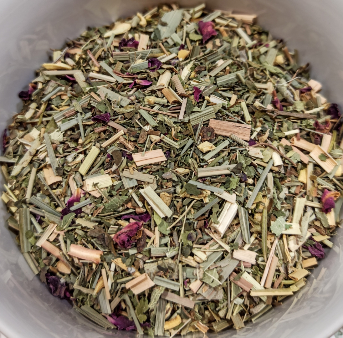 Zutaten: Lemongras, Pfefferminzblätter, Süßholzwurzel, Tulsikraut, Zitronenverbene, Salbeiblätter, Thymian, Rosmarinblätter, Rosenblütenblätter (3%), Ashwagandawurzel (2%), Silberlindenblüten