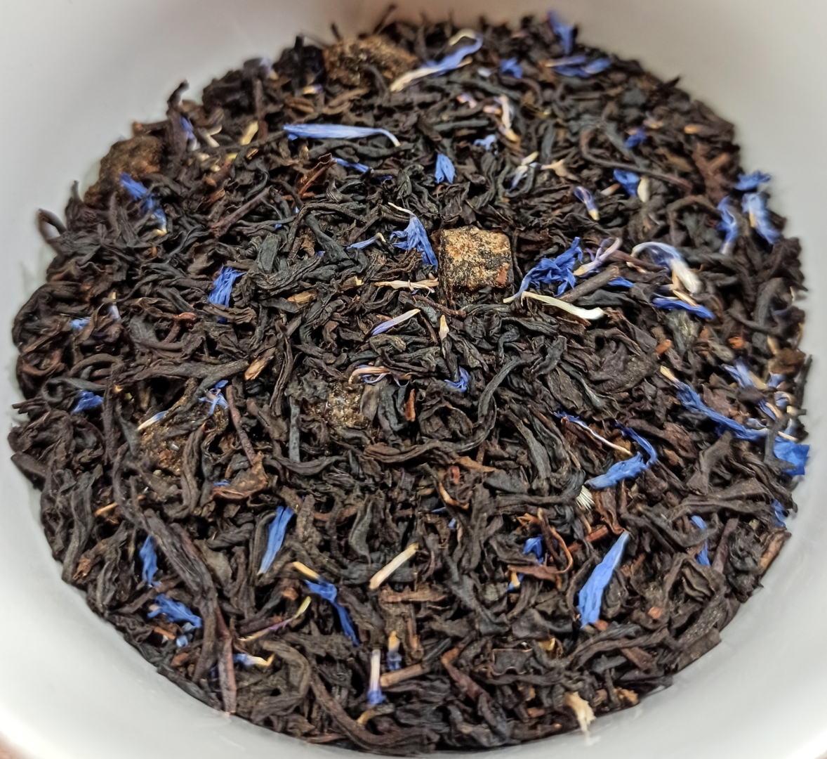 Zutaten: Schwarzer Tee, Pflaumenstücke (4%), Aroma, Kornblumenblüten